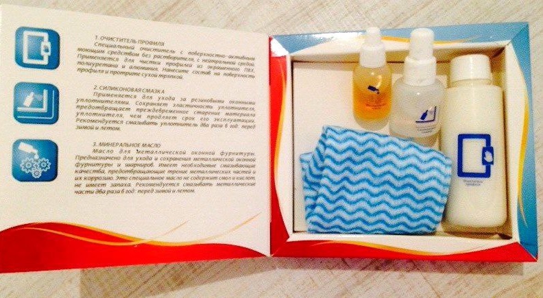 Сделать вышеописанные процедуры совсем несложно, если под рукой есть все необходимое. Компания Окна Премиум предлагаем комплект средств для обслуживания пластиковых окон и дверей: смазки и чистящие средства - в профессиональном наборе.