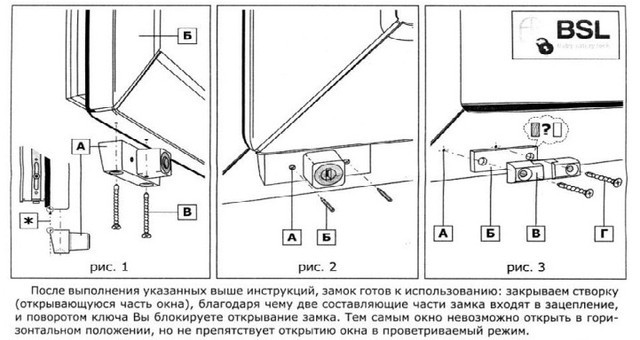 Подходит для профиля окон: ПВХ Устройство блокирует поворотную функцию и разрешает использование наклонно-поворотной функции (для проветривания).